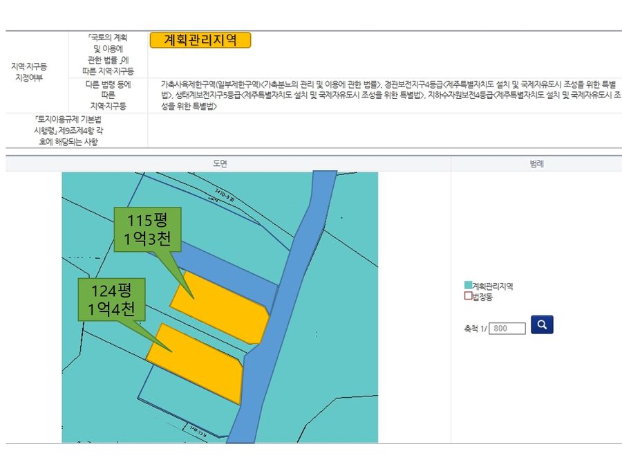 ◈ 지역지구 : 계획관리지역 (건폐율 40% 용적율 80% 까지 건축가능)